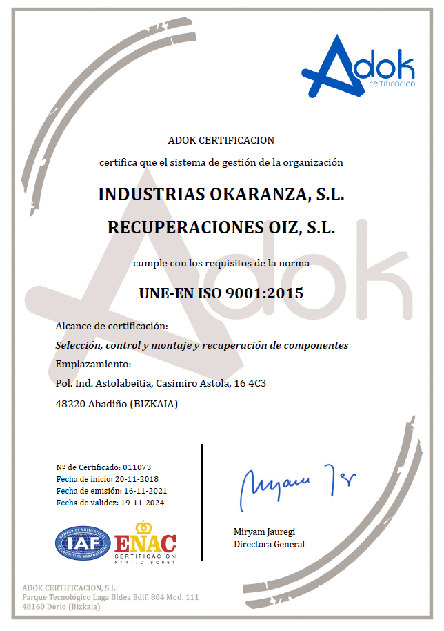Con envío del formulario de recogida de datos usted acepta la política de privacidad de INDUSTRIAS OKARANZA SL.